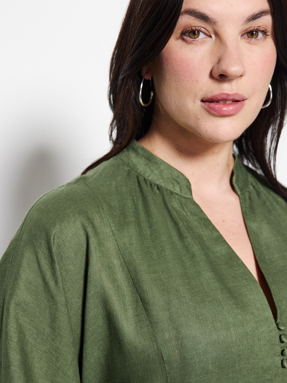 Vented V-neck with mandarin collar