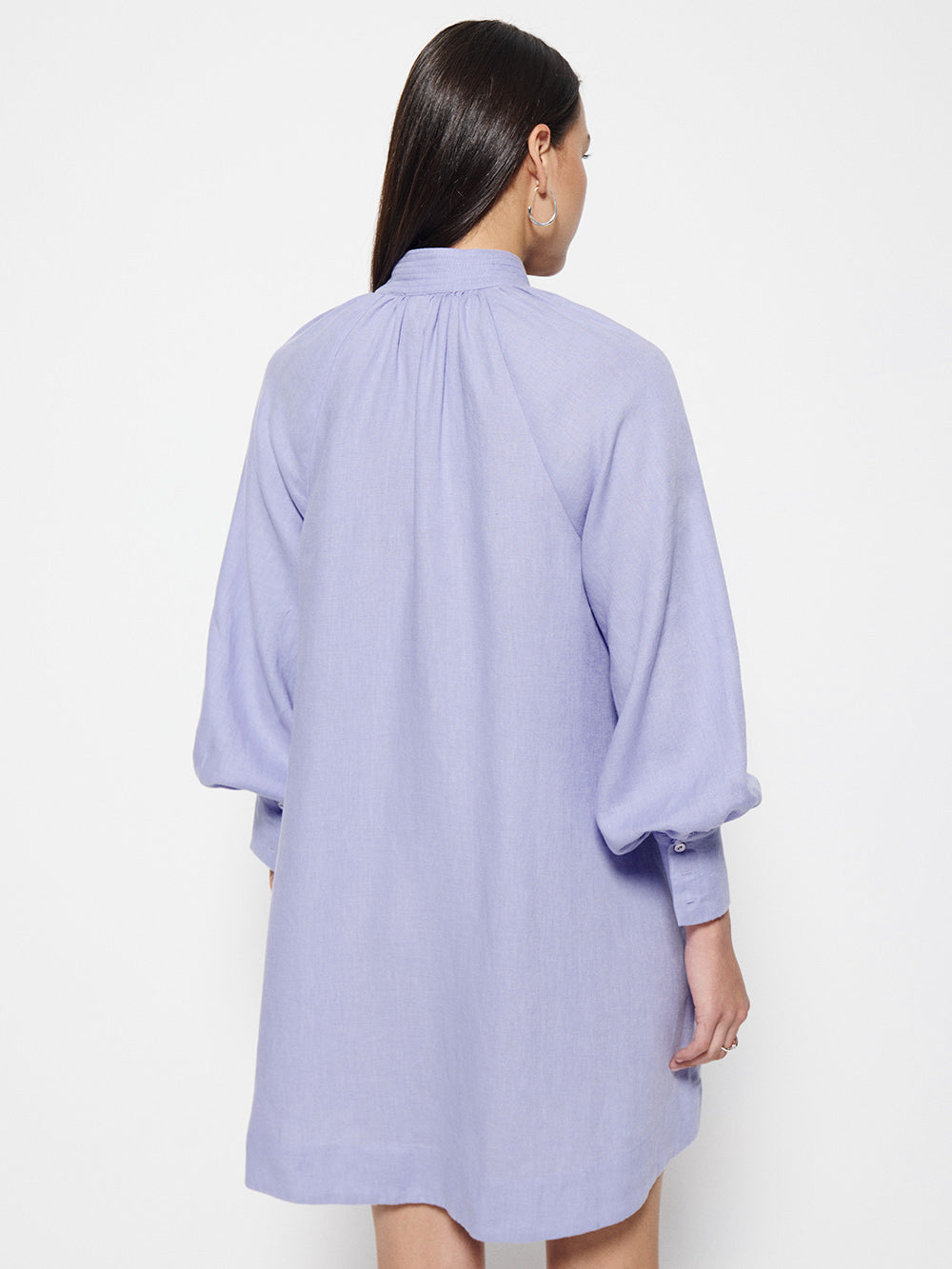 Vented neckline and mandarin collar with decorative topstitching